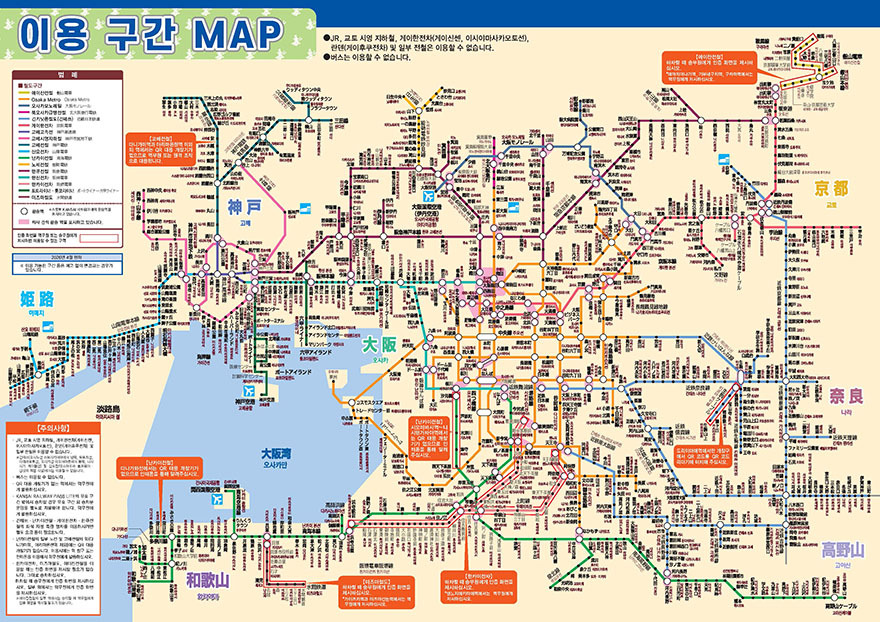 - 긴키닛폰 철도, 난카이 전철, 게이한 전철, 한큐전철의 좌석 지정제 특급 열차를 이용하실 경우, 별도 요금이 필요합니다.