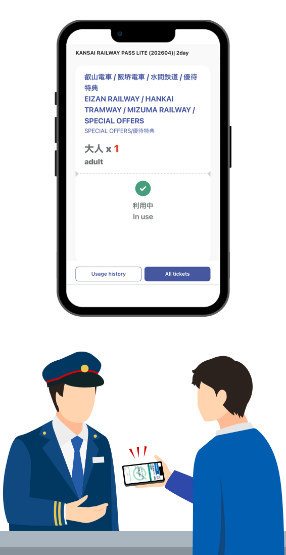 สามารถนั่งรถไฟใต้ดินและรถไฟเอกชนของคันไซได้ด้วยตั๋วเพียงใบเดียว ไม่ต้องซื้อตั๋วทุก ๆ ครั้งที่ขึ้นรถ ทำให้ต่อรถได้อย่างราบรื่น