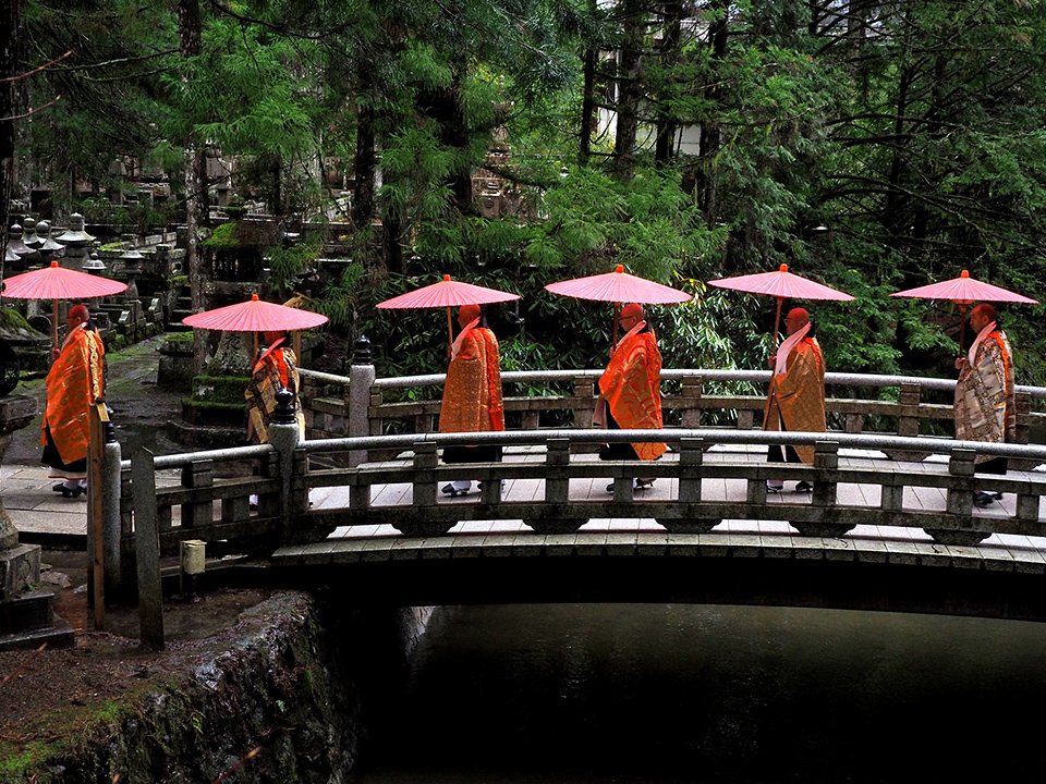 จากสะพานอิจิโนะฮาชิไปยังสุสานโกเบียวเรียงรายไปด้วยสถูปบูชามากกว่า 200,000 ต้น